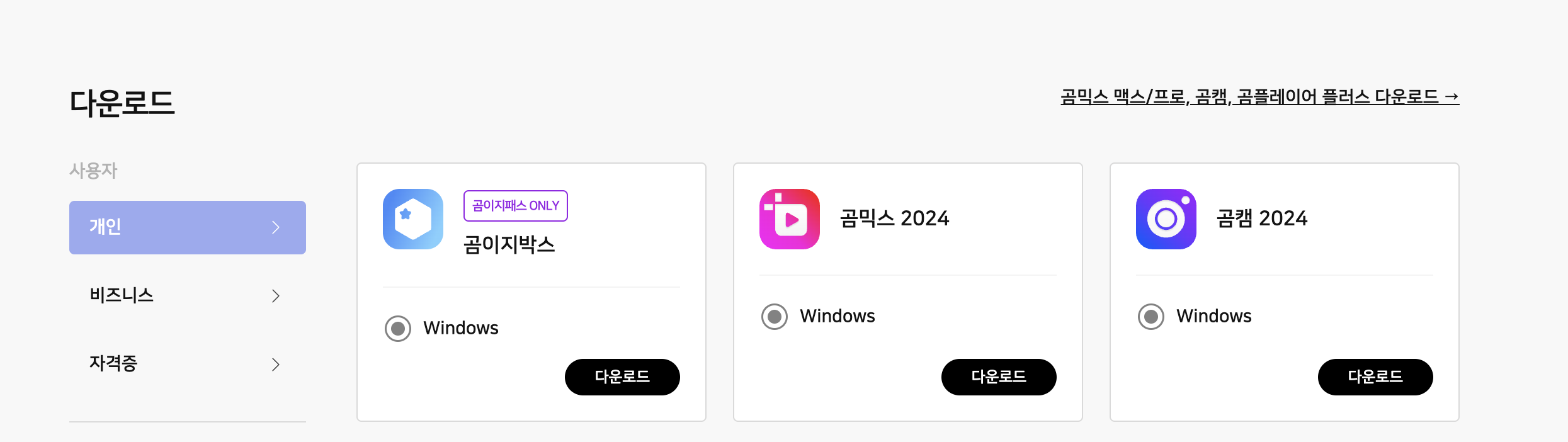 본인이 원하는 프로그램을 다운 받으시면 됩니다. 만약 번거로우시면 👉곰믹스 구버전 다운로드 바로가기로 가시면 됩니다.